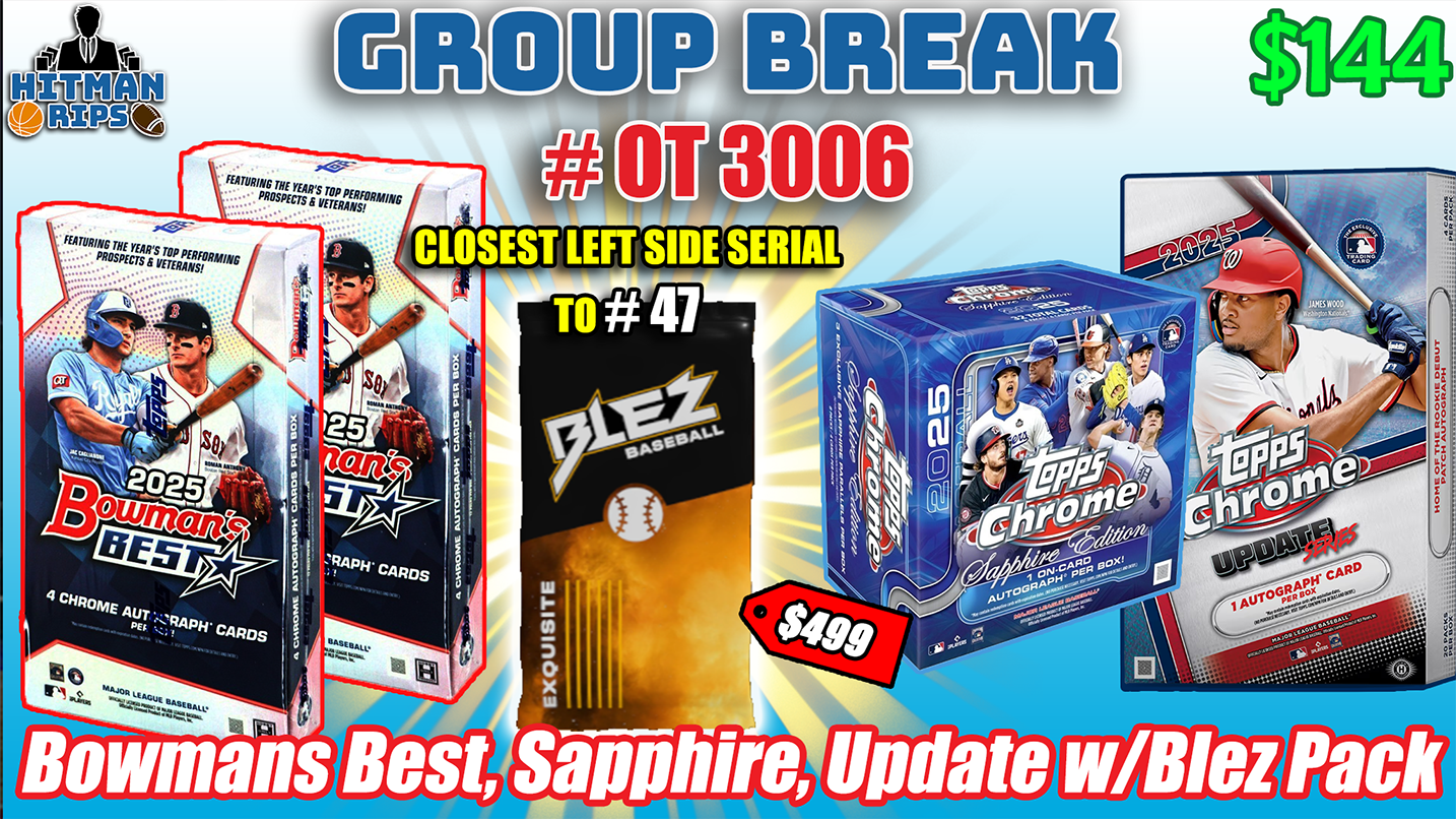 *Closest Left Side Serial to #47 in the Break is Awarded (1) BlezOnline Baseball Exquisite Pack(Value $499)